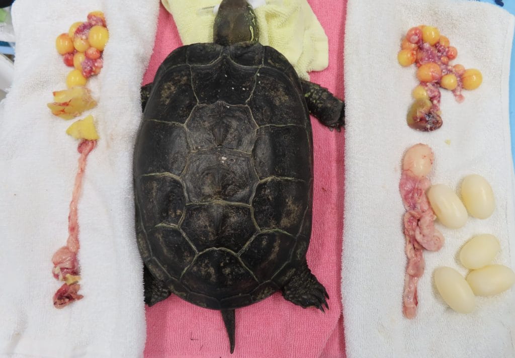 この子は臓器の特徴から卵管が考えられ、レントゲン検査で卵が確認されました。