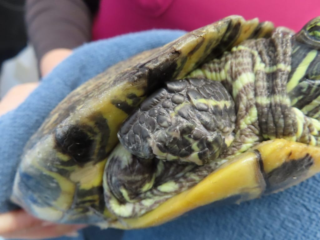 カメの外傷 症例紹介, 爬虫類 2025年9月29日 カメの事故は冬眠明けの3~6月あたりで急増します。この子は事故により、右手が裂けてしまいました。かなり深くまで切れてしまっており、神経なども断裂しています。そのため、傷が化膿しないように洗浄し、縫合します。皮一枚でつながっているところはくっつかない可能性があるため残念ですが切断します。数か月たつと、傷はこのようにきれいになります。普通に泳ぐこともできます。