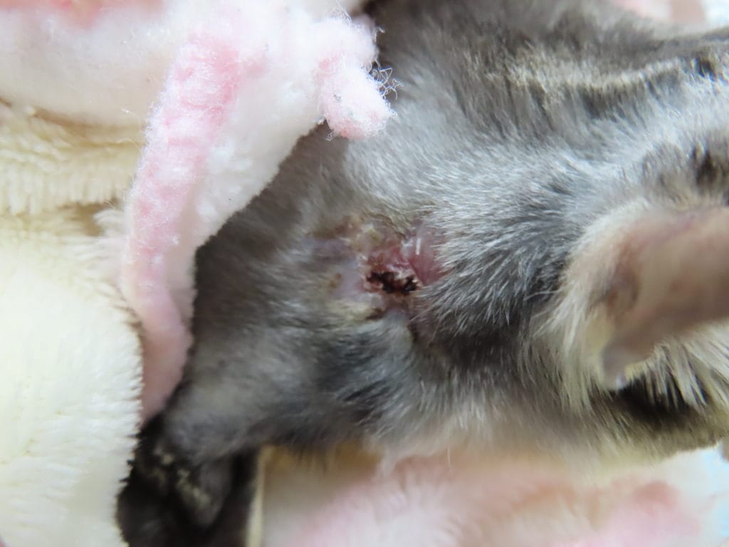 フクロモモンガの背部腫瘤 症例紹介, フクロモモンガ 2025年8月19日 フクロモモンガは腫瘍ができることが多いです。この子は10歳くらいの高齢の子ですが、肩に腫瘍があり、大きくなってきたため年齢のリスクはありましたが、手術により摘出することにしました。こちらがと切除したものです。おそらく脂肪腫っぽくみえます。麻酔も何とか覚めてくれて無事終わりました。傷口の治りは、遅かったですが無事に治りました。