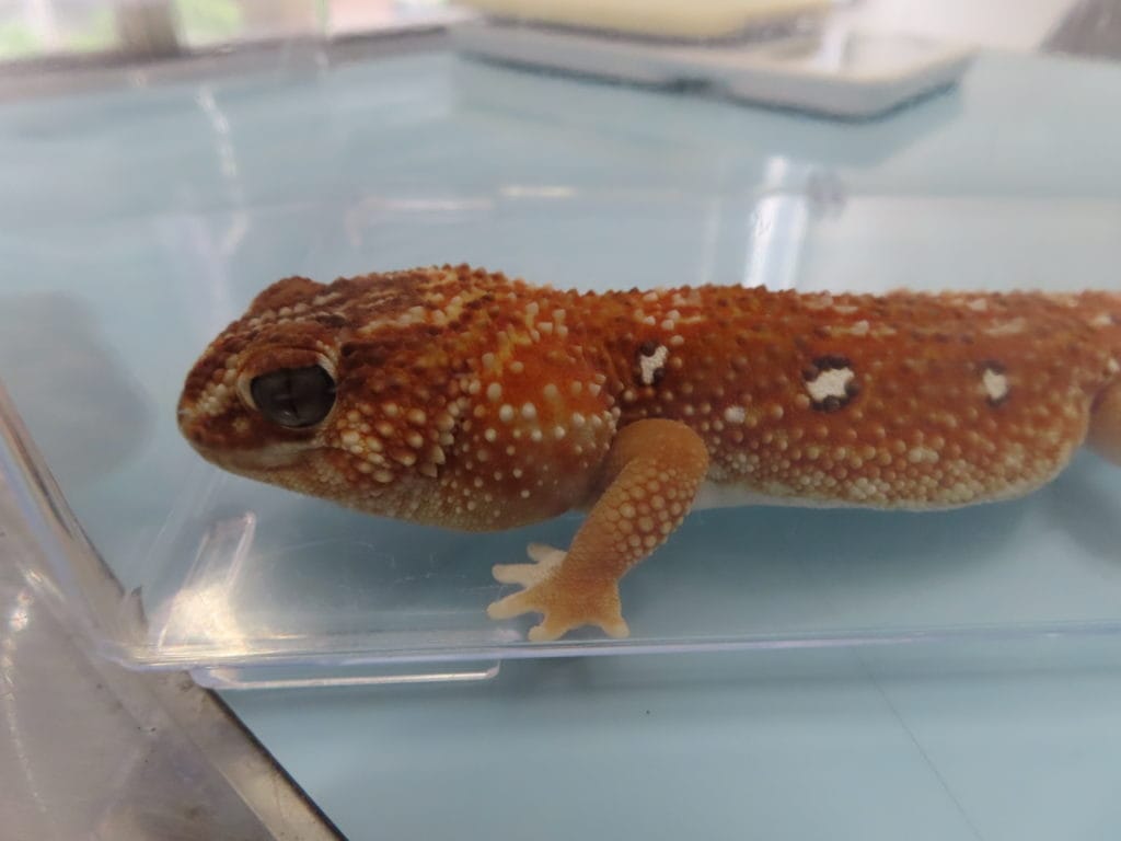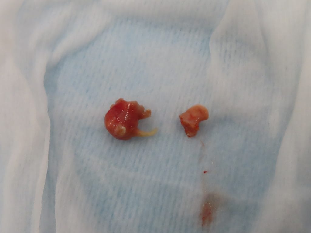 グローブヤモリの頸部膿瘍 症例紹介, 爬虫類 2025年9月12日 爬虫類では皮下に膿がたまることがしばしばあります。爬虫類の膿は硬くなることが多く、刺しても吸引できないことがあります。この子は左側の首が腫れてきたことを主訴に来院されました。皮膚の下の奥のほうが腫れていました。切開するとこのように大きな膿がでてきました。針を刺しただけでは出てきませんので、切開する必要があります。