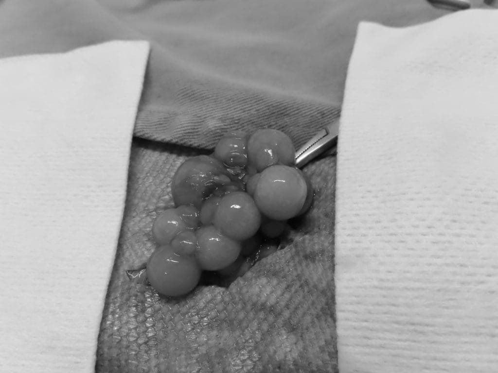 フトアゴの卵巣・卵管疾患はかなり多いです。手術が必要になる場合も多いですが、状態が悪かったり、腫瘍や卵墜などである程度進行していると手術の大変さも変わってきます。実際でも、調子が問題なく、健康診断を受けた際に、卵巣に異常が見つかることも珍しくありません。おなかが張っていたり、なんとなく元気がないなどの場合は早めに病院で健康診断を受けたほうがいいと考えます。