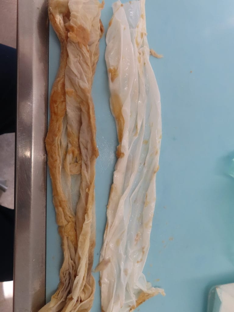 お尻からこれが出てきたそうです。ペットシーツの端みたいです。よくお尻から出てきました。