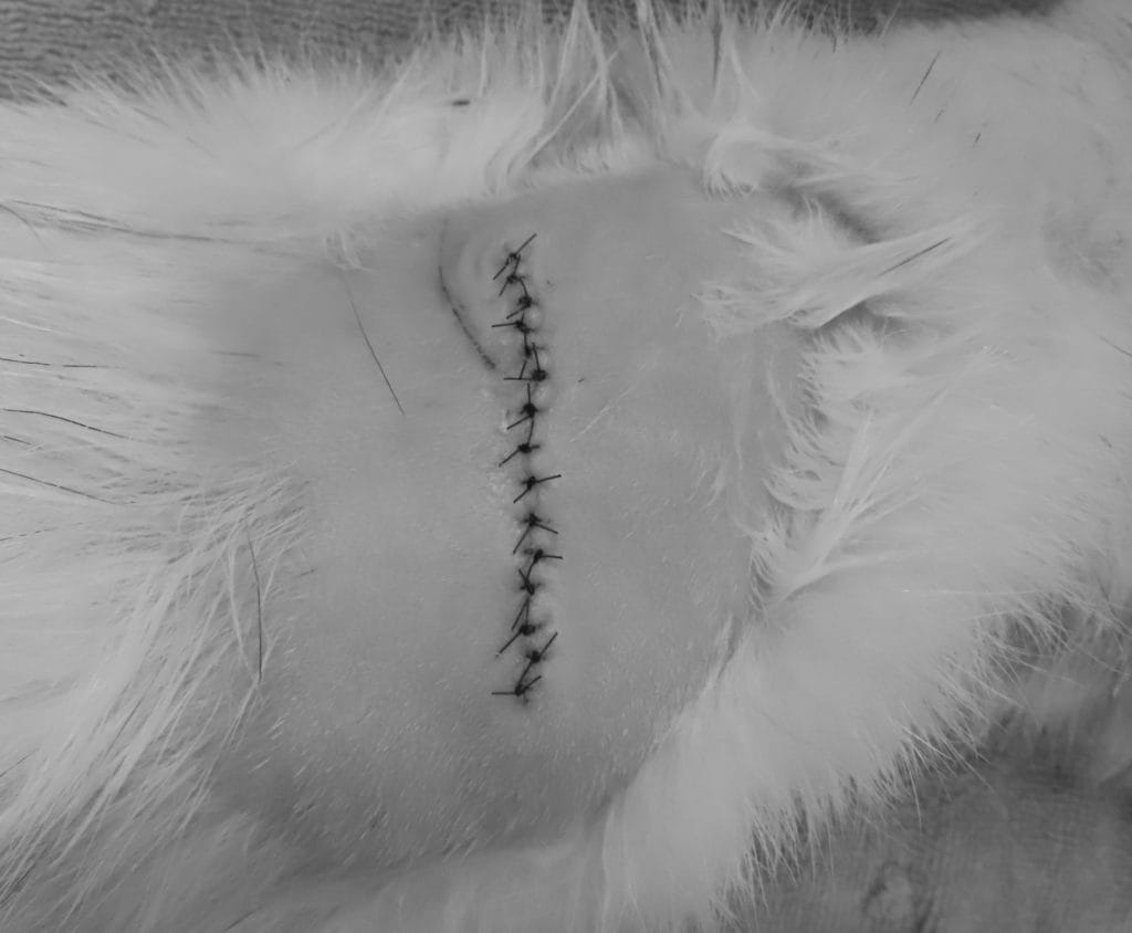 傷口が大きいか小さいか、場所によって縫合の仕方を変えています。