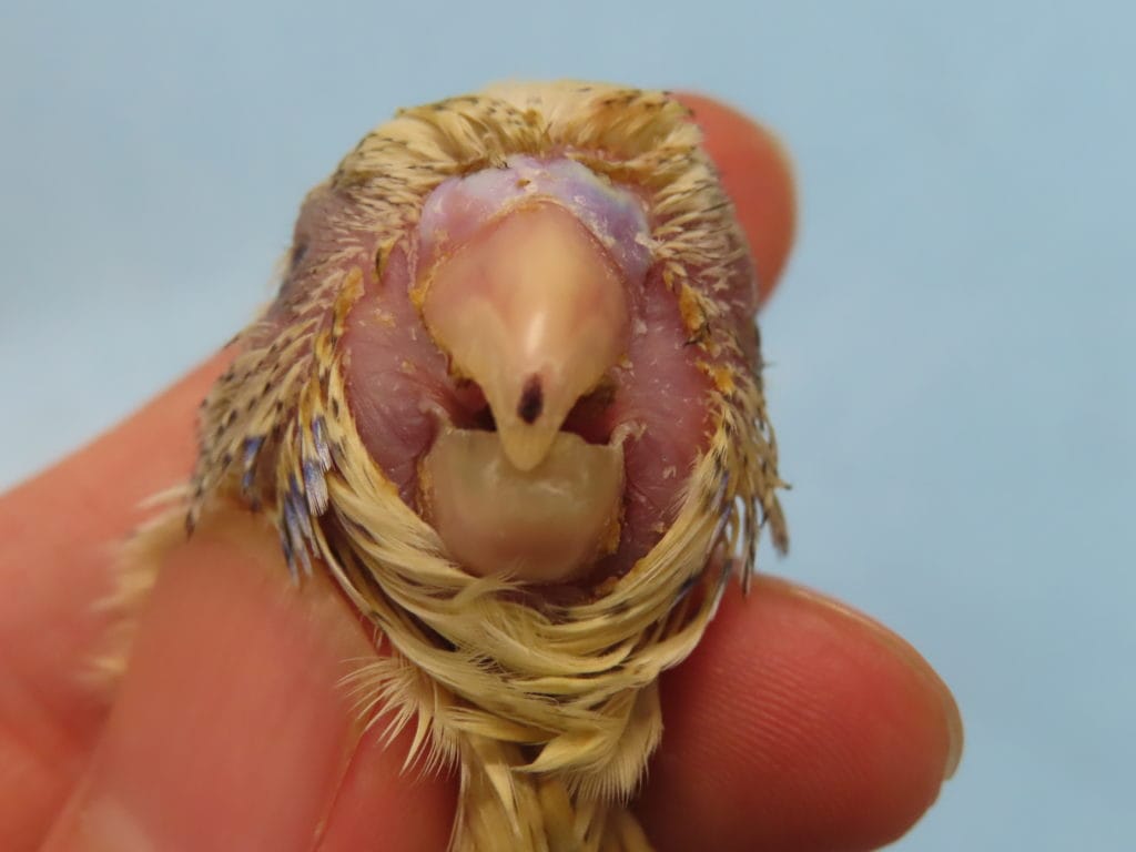 この子はまだ若齢のセキセイインコですが、急に顔が腫れてきました。