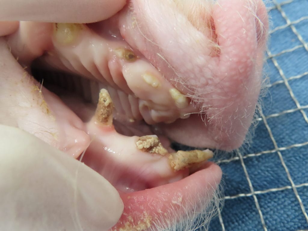 ブタの歯は場所によっては抜歯が難しいため、歯冠修復は根管治療を行うことがあります。