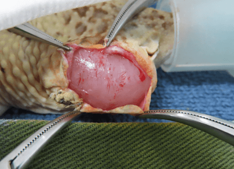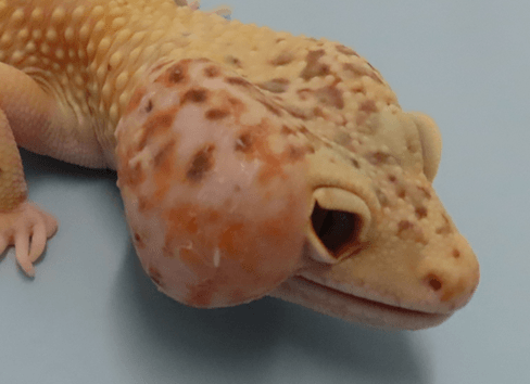 通常はレオパでこのような腫れを見ると、腫瘍や膿瘍を疑う場合が多いですが、