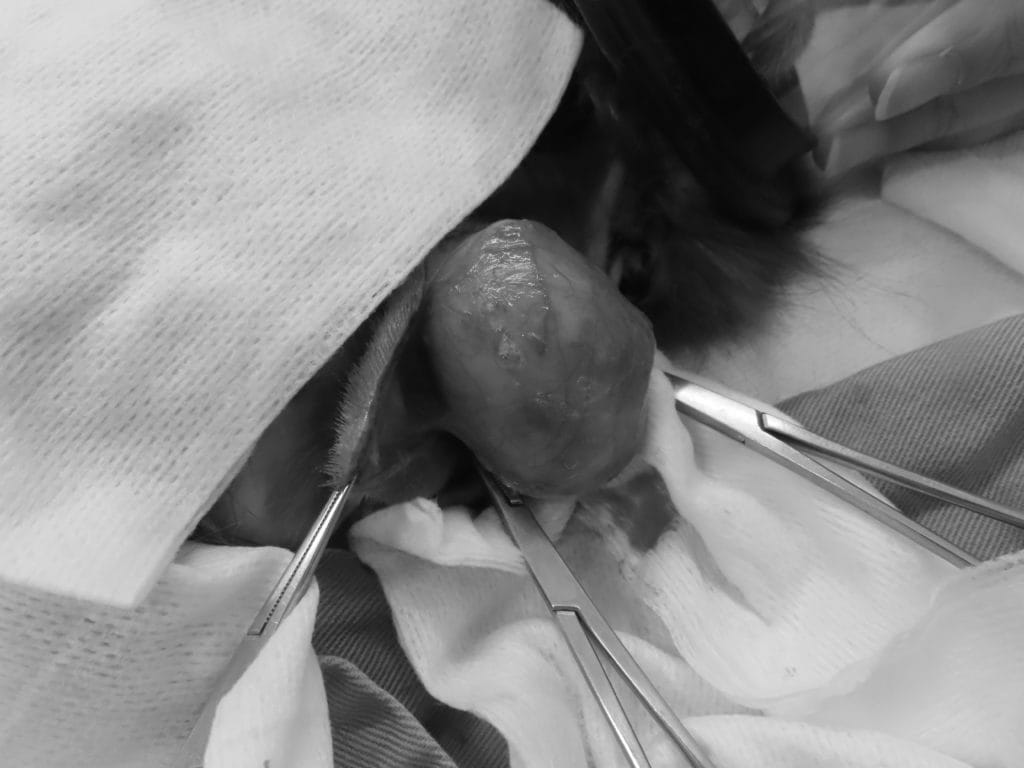 この子は11歳のウサギですが、別の症状で来院しており、、触診で首にしこりが触れたため、進行も早かったため、手術で切除することにしました。
