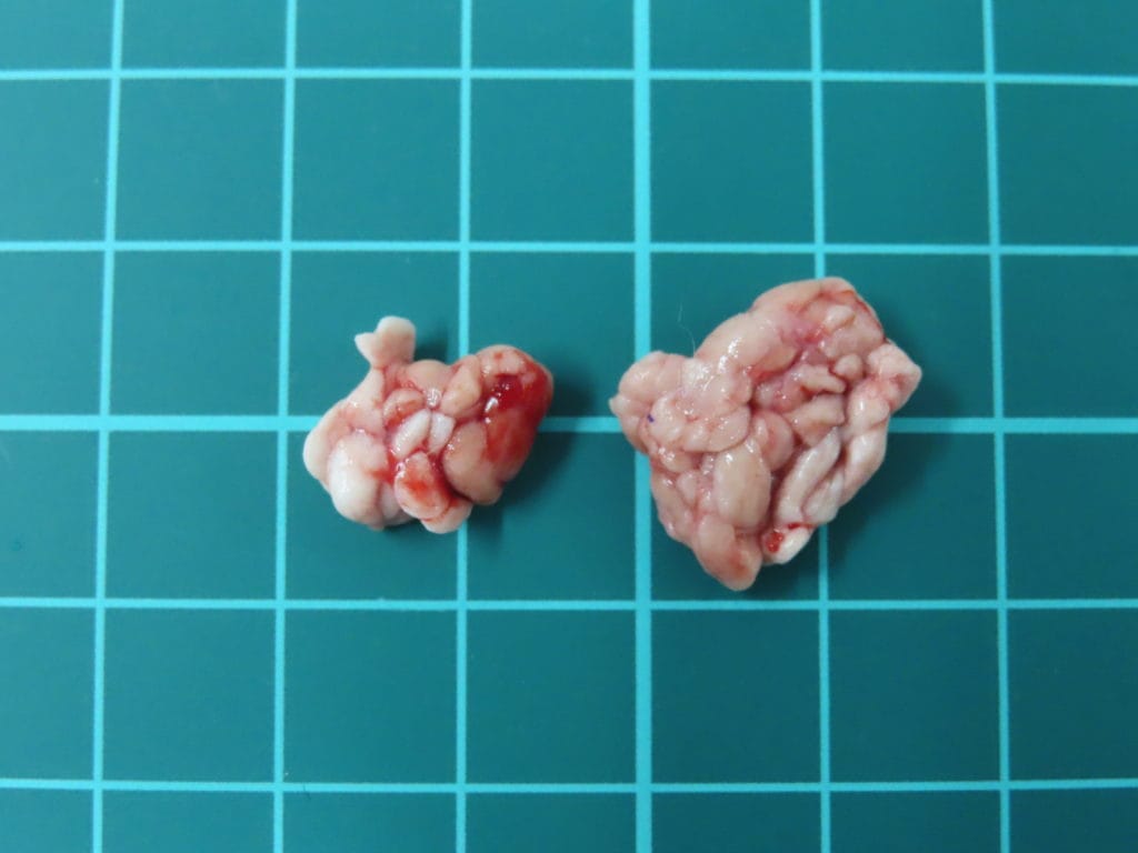 こちらは切除した瞬膜腺です。性ホルモンの影響が示唆されているため、同時に去勢手術も行いました。
