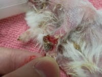 症例紹介 2026年2月22日 ハムスターの左前肢自咬 この子は急に自分の前足を噛み始め、他院にて治療を行いましたが、よくならず当院に来院されました。 来院当初はエリザベスカラーと手にテーピングをしており、テーピングを外すと、左前肢の一部から骨の一部が露出していました。 レン […]