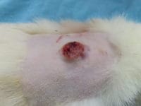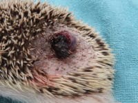 症例紹介 2025年12月4日 ハリネズミの体表腫瘍(線維肉腫) この子は針がある体表に腫瘍ができたため、当院に来院しました。 表面は自壊しており、出血も伴っています。 そのため、切除することにしました。 切除後の傷口はこのような形です。 抜糸も必要がない形で縫合しています。病理検査の […]